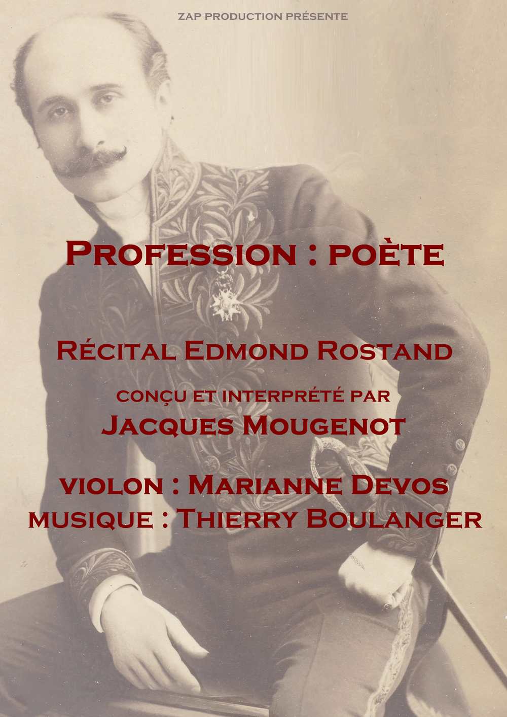 Note d’intention : Edmond Rostand, le glorieux auteur de Cyrano de Bergerac, de Chantecler et de l'Aiglon a aussi écrit une œuvre poétique importante mais hélas moins connue, et pour cause, ses 3 recueils de vers : Les Musardises, Le Cantique de l'Aile, Le vol de la Marseillaise, n'ont pas été réédités à ma connaissance depuis les années 30... Ils contiennent pourtant nombre de chefs-d'œuvre poétiques dont l'esprit, la grâce, l'humour, la profondeur, la verve, la portée humaine et philosophique, n'ont rien à envier à ceux de son théâtre. Ce sont ces textes si magnifiquement écrits, si simplement lyriques, si modernes aussi, et si touchants par ce qu'ils recèlent de vérités humaines, que je tâcherai de vous faire entendre, peut-être découvrir et sûrement aimer dans ce récital que Marianne Devos ponctuera d'intermèdes musicaux au violon.